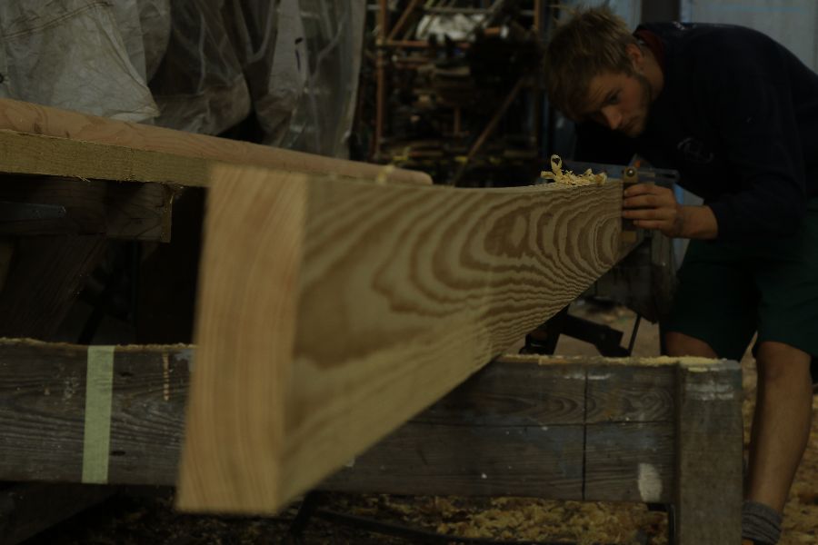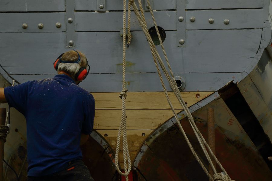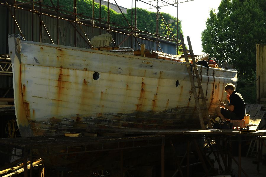 Built in 1926, the 43′ Jenny Wren arrived at our yard after being on the dry for over four years. Through the latter stages of 2017 we were able to carry out various repairs to get her shipshape once again. Leaky coverboards, a rotten sternpost and frames were some of the issues we faced.
