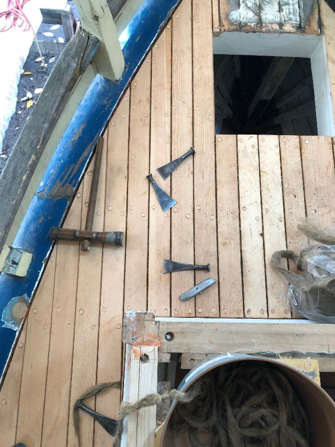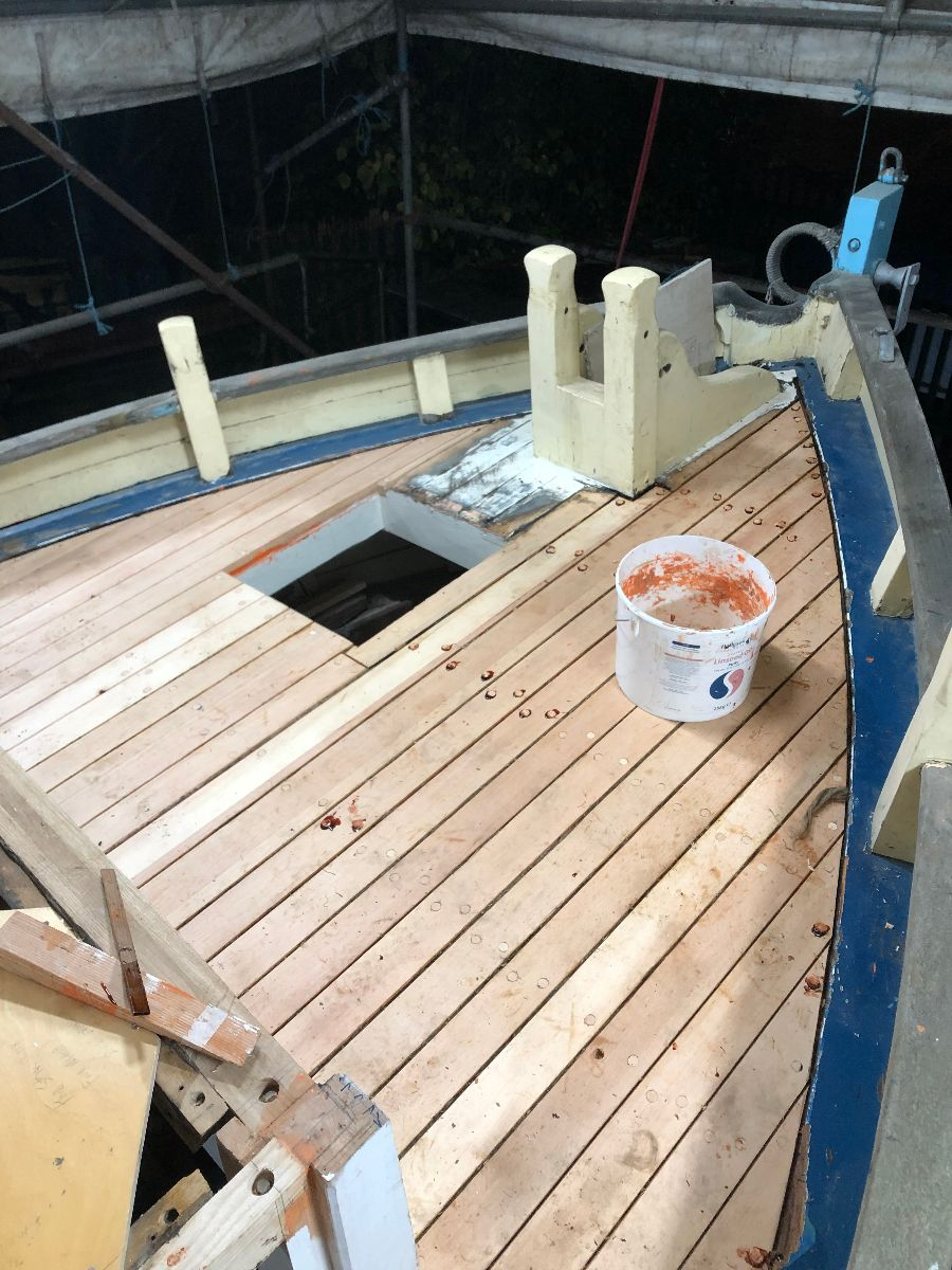 Fiddle came to us for the replacement of numerous rotten planks on her hull in late 2017. She was completed just before Christmas and went back in the water during the first week of January 2018.